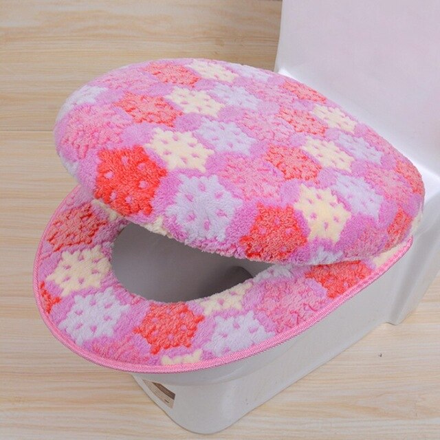 Warm Two-Pieces O-Shape Zipper Toilet Cover Seat Coral Fleece Travel Set for Bathroom Supplies